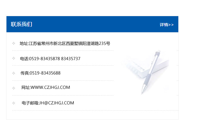 地址:常州市新北區友邦商務大廈1幢16、17層  電話:0519-85101652  傳真:0519-85112595  郵編:213022  網址:www.cz-jiayue_cn.jsyazhi.com  郵箱:xiajifengaa@163.com